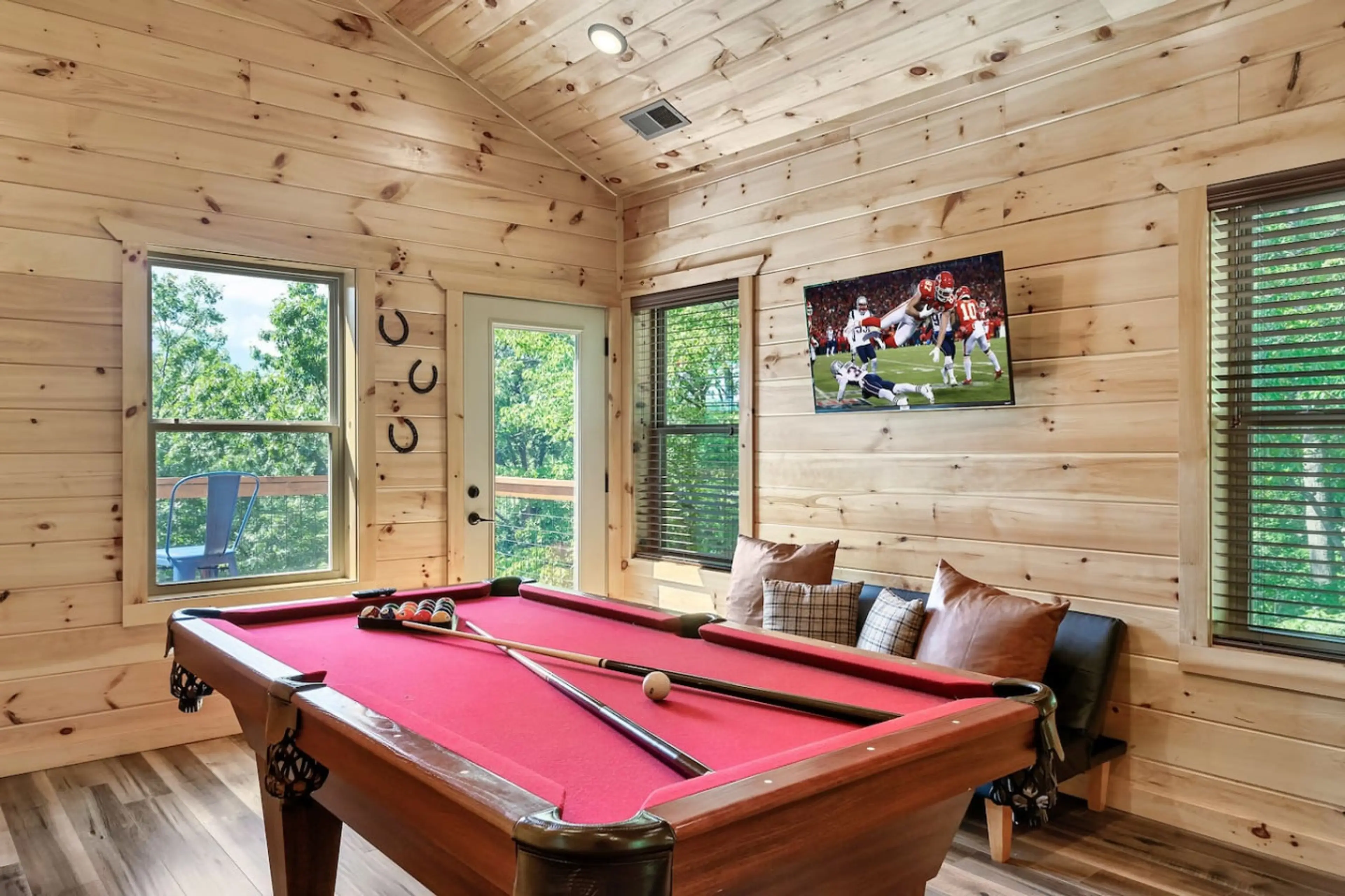 Pros- The cabin was very spacious, nicely decorated, clean. Had an issue with the hot tub-the property manager was quick to respond and fix the issue. Private location, enough space to spread out, kitchen well stocked, nice pool table, great views from the balconies!